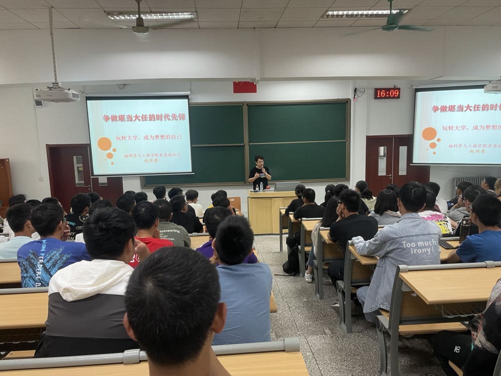 赵珥希老师首先对新生同学们的到来表示欢迎,他指出大学生活精彩纷呈,把握未来才能拥有无限的可能。同时也对新生提出以下几点要求:一是把握机遇、与时俱进,他说我国力争2030年前实现碳达峰,2060年前实现碳中和,这是党中央作出的重大战略决策,核能是作为国家“十四五”规划加快推动经济社会发展全面绿色转型的战略举措中的重要组织部分,核吃瓜网 学子要把握住这个机会,为祖国核电事业添砖加瓦;二是目标明确、扎实基础,要提前规划未来的道路,从事任何职业都需要同学们学习本领过硬、有较强的创新能力,努力成为一名综合素质全面发展的优秀大学生;三、充分利用好课余时间,多学习其他的知识技能,多参加社会实践了解社会,每天为梦想奋斗一小时,让自己的大学生活像阳光般灿烂,让青春之花最终绽放在祖国最需要的地方。