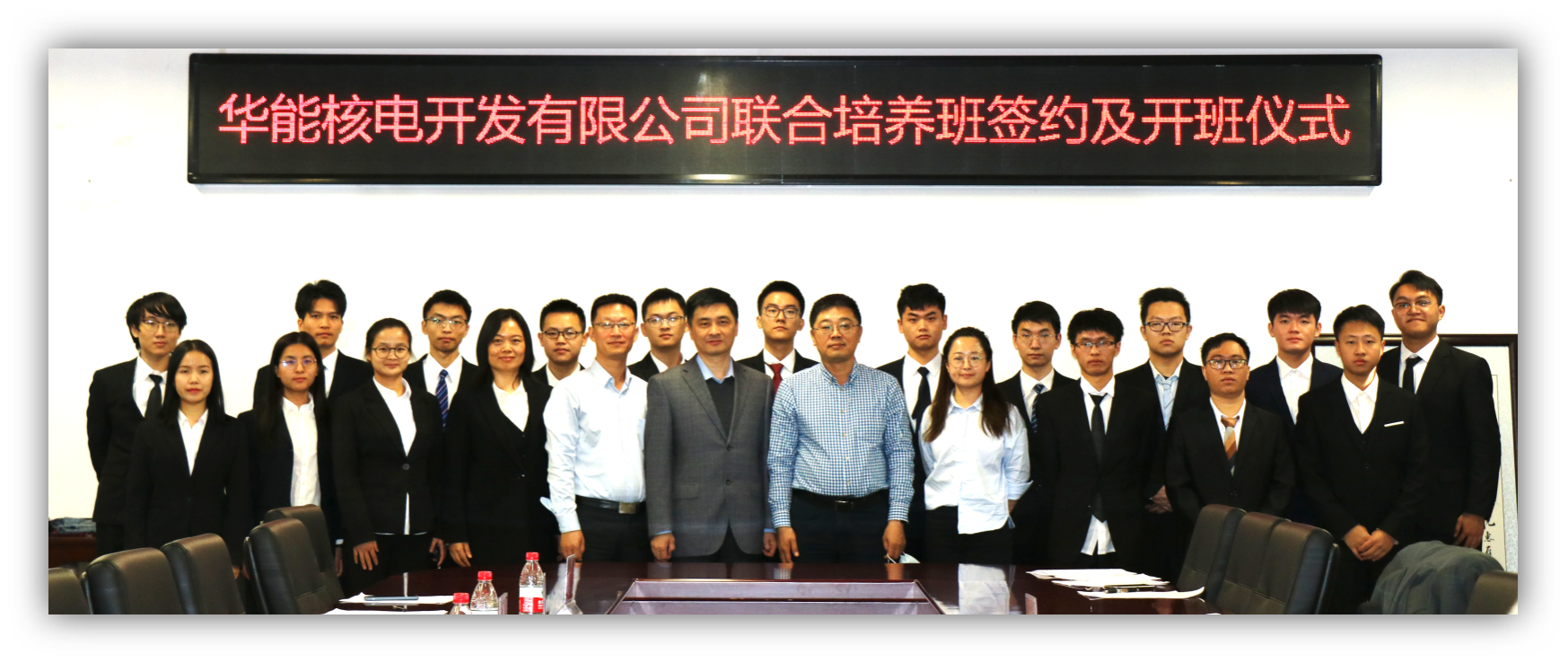华能核电开发有限公司总经理潘风国在开班仪式上对校方的大力支持表示衷心感谢,并对13位华能准员工表示祝贺。他强调,重启华能核电联培项目,迅速高效组建开班,离不开校方的大力支持与帮助。2004年以来,华能核电项目在福岛核事故的阴翳下逆风前行,从无到有,直至2016年,华龙一号项目正式启动,两台百万千瓦机组即将在海南昌江落户。并提出,希望同学们珍惜这次联培机会,做到以下几点要求:一是作为在校学生,对于学业不可懈怠,要继续努力,在完成联培计划的同时保证自身专业课程的顺利完成。二是作为社会接班人,身体是革命本钱,同学们要劳逸结合,专注课业的同时要强身健体。三是作为华能核电的准员工,同学们应端正态度,践行企业价值观,为华能集团树立良好的企业形象。