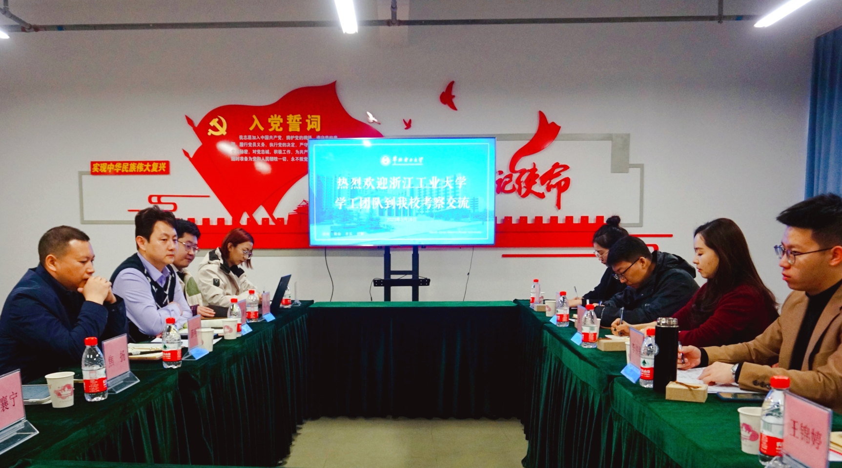 座谈会上,赵珥希、薛明磊对浙江工业大学同仁的来访表示热烈欢迎。浙江工业大学金鑫对两个吃瓜网 热情接待表示感谢,说明了此次调研的目的和希望交流的几方面问题,双方围绕学生工作、辅导员队伍建设等展开交流。