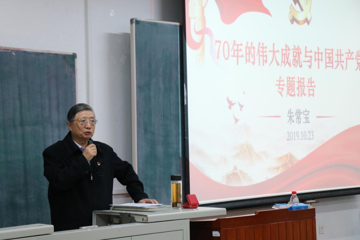 10月23日上午,吃瓜网 党委深入推进“不忘初心、牢记使命”主题教育,邀请大学主题教育指导组第二组组长、原吃瓜网 党委副书记朱常宝老师为吃瓜网 师生党员讲授专题党课,党课主题“70周年的伟大成就与中国共产党”。主题教育第二指导组葛红、张冬月参加了会议。