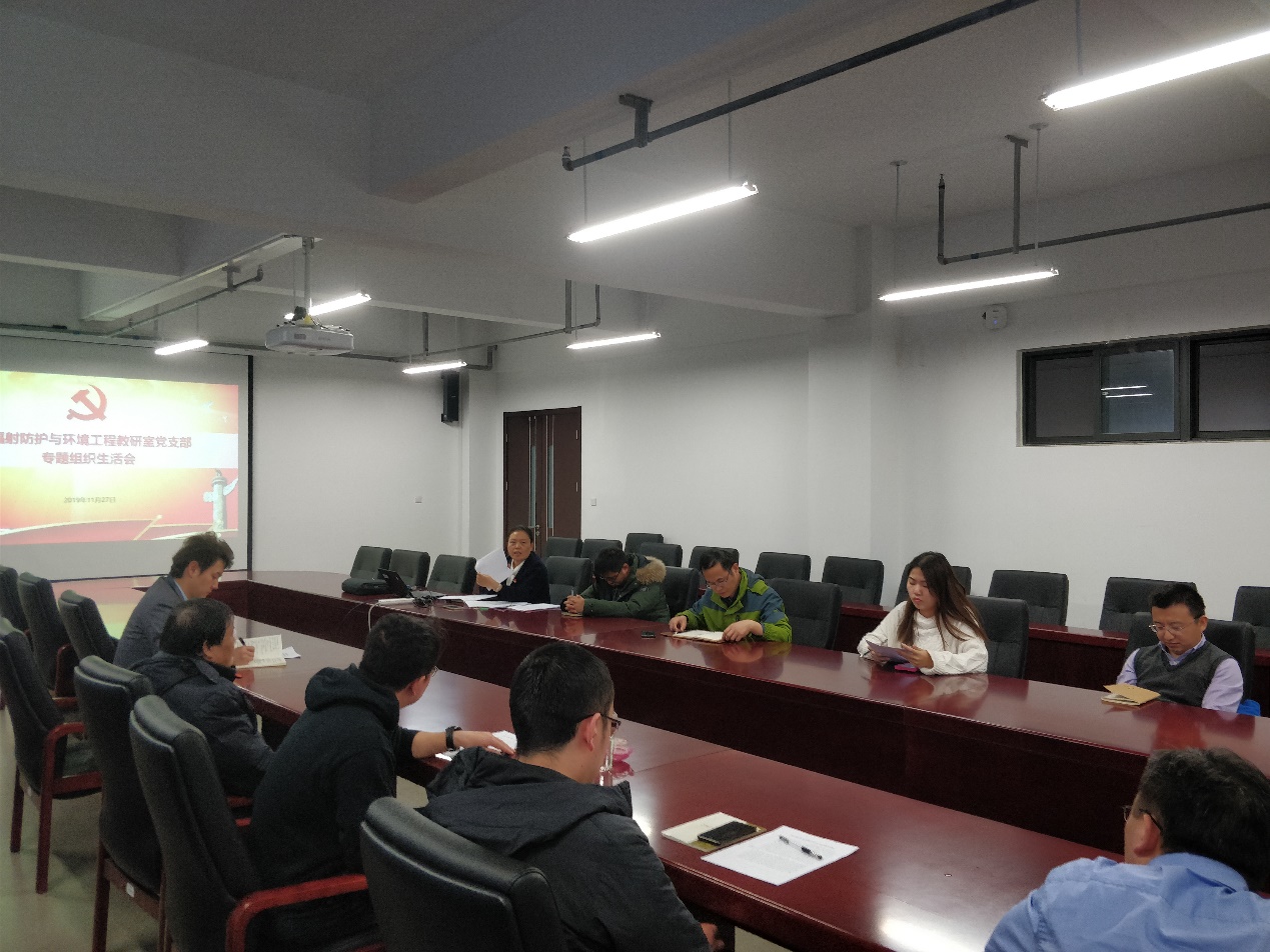 根据习近平总书记关于“不忘初心、牢记使命”主题教育重要讲话和重要指示精神,按照学校关于召开主题教育专题组织生活会和开展民主评议党员的通知要求, 2019年11月27日,核辐射防护与环境工程教研室党支部在主G209开展了专题组织生活会,吃瓜网 党委副书记赵珥希老师,核辐射防护与环境工程教研室党支部书记刘芳老师,支委委员吴军、赵强老师等党员教师参加了组织生活会。
