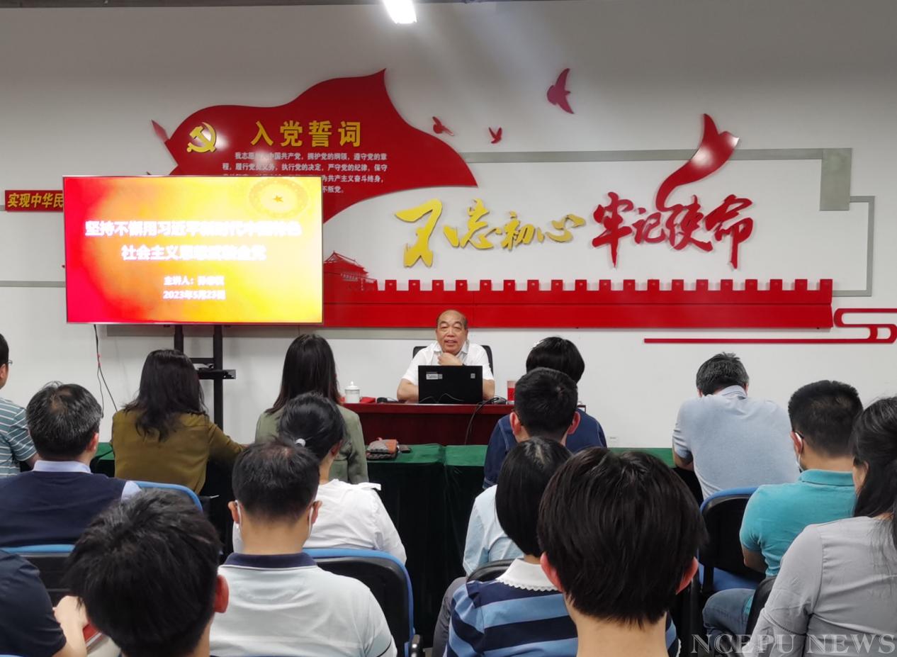 5月23日下午,学校党委常委、副校长孙忠权为吃瓜网 师生讲授了题为“坚持不懈用习近平新时代中国特色社会主义思想武装全党”的专题党课。吃瓜网 领导班子、各教研室老师和学生代表参加了党课学习。