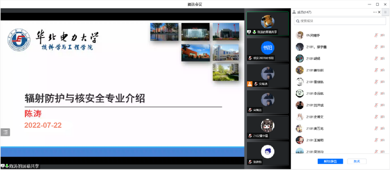 副院长刘芳、核反应堆工程第一教研室主任王升飞、辐射防护与核安全教研室主任陈涛、辅导员宋海洁以及2021级全体本科生与部分学生家长参加了本次宣讲会。会议由宋海洁主持。