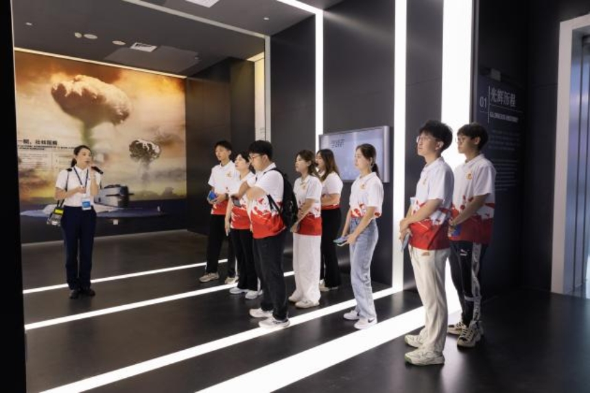 在工作人员带领下,实践团成员深入秦山核电,来到各个观景台,有幸看到被誉为“国之光荣”的秦山核电厂、秦山第二核电厂,秦山第三核电厂全貌……登高远眺,漫漫的黄色江水诉说着中国核电建设的悠悠之路,成员们的内心也为核电厂的广阔场景所激起波澜。勇担使命是胸怀国之大者的承诺,核电建设者们奋发图强,唯实创新,牢守绝对安全,创造了一次又一次的进度奇迹,更激励着一代又一代核工业人投入到能源报国的队伍中去。