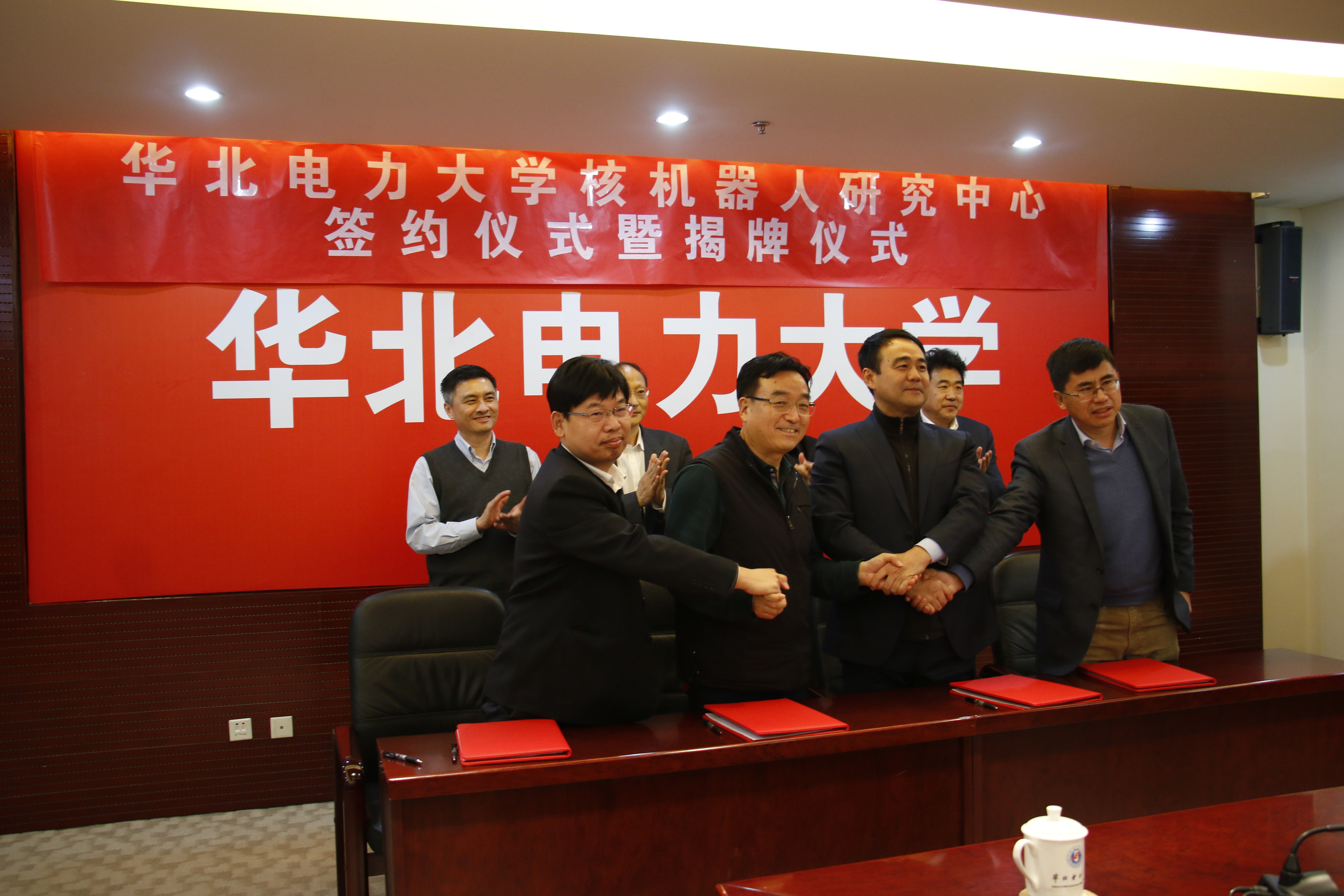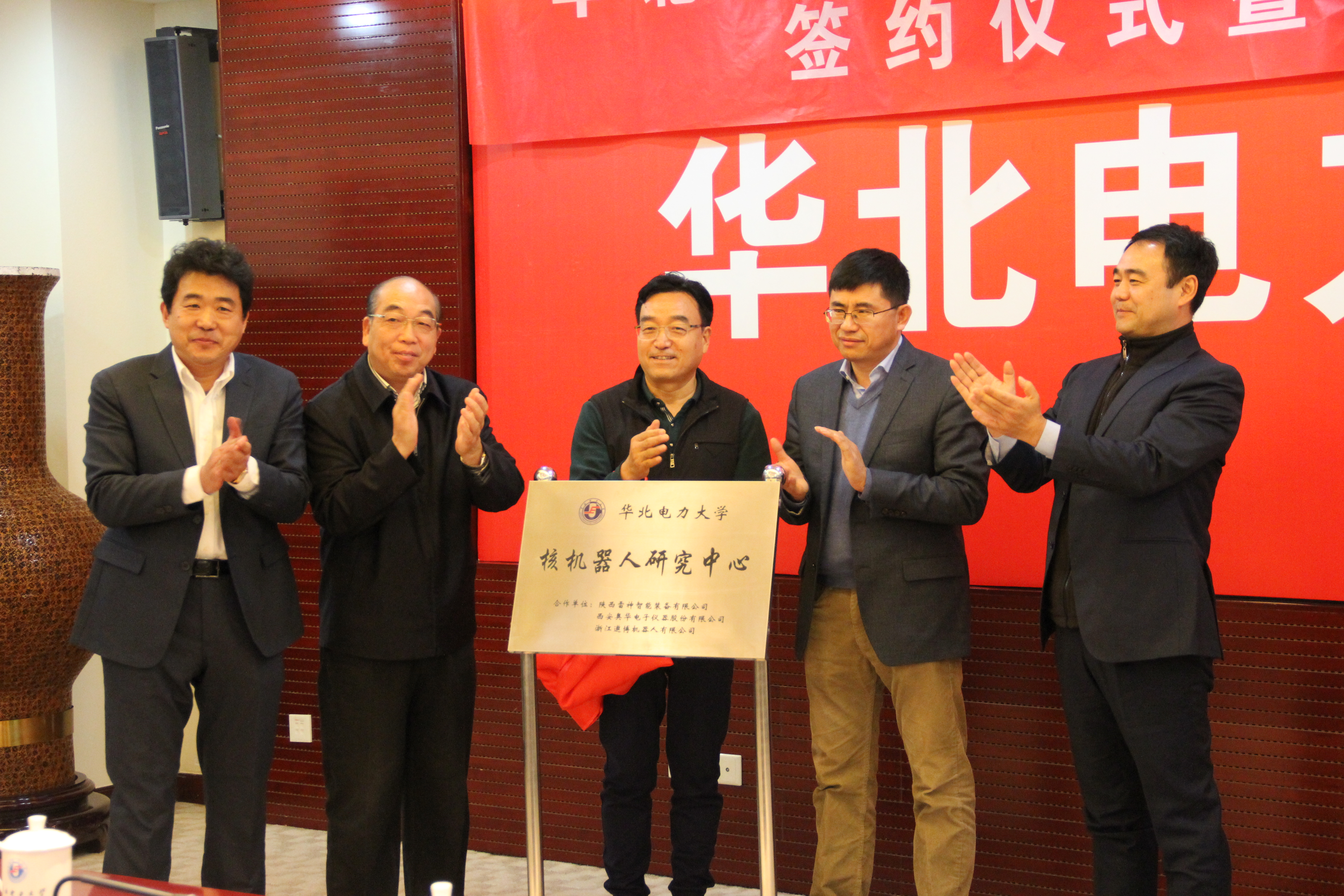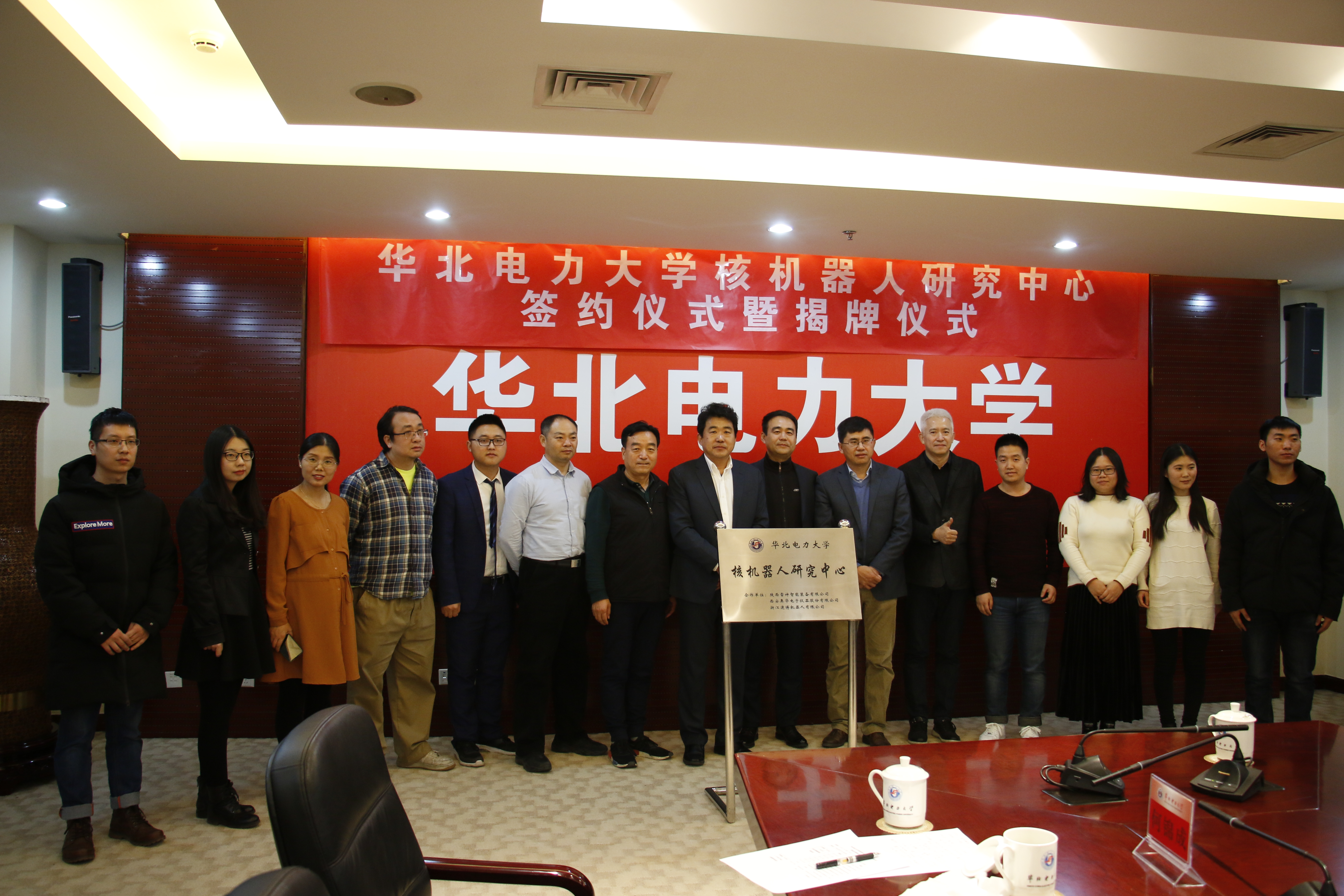在最后,各单位代表签署了合作协议,并共同举行了中心成立的揭牌仪式,宣告了吃瓜网 核机器人研究中心的正式成立。
