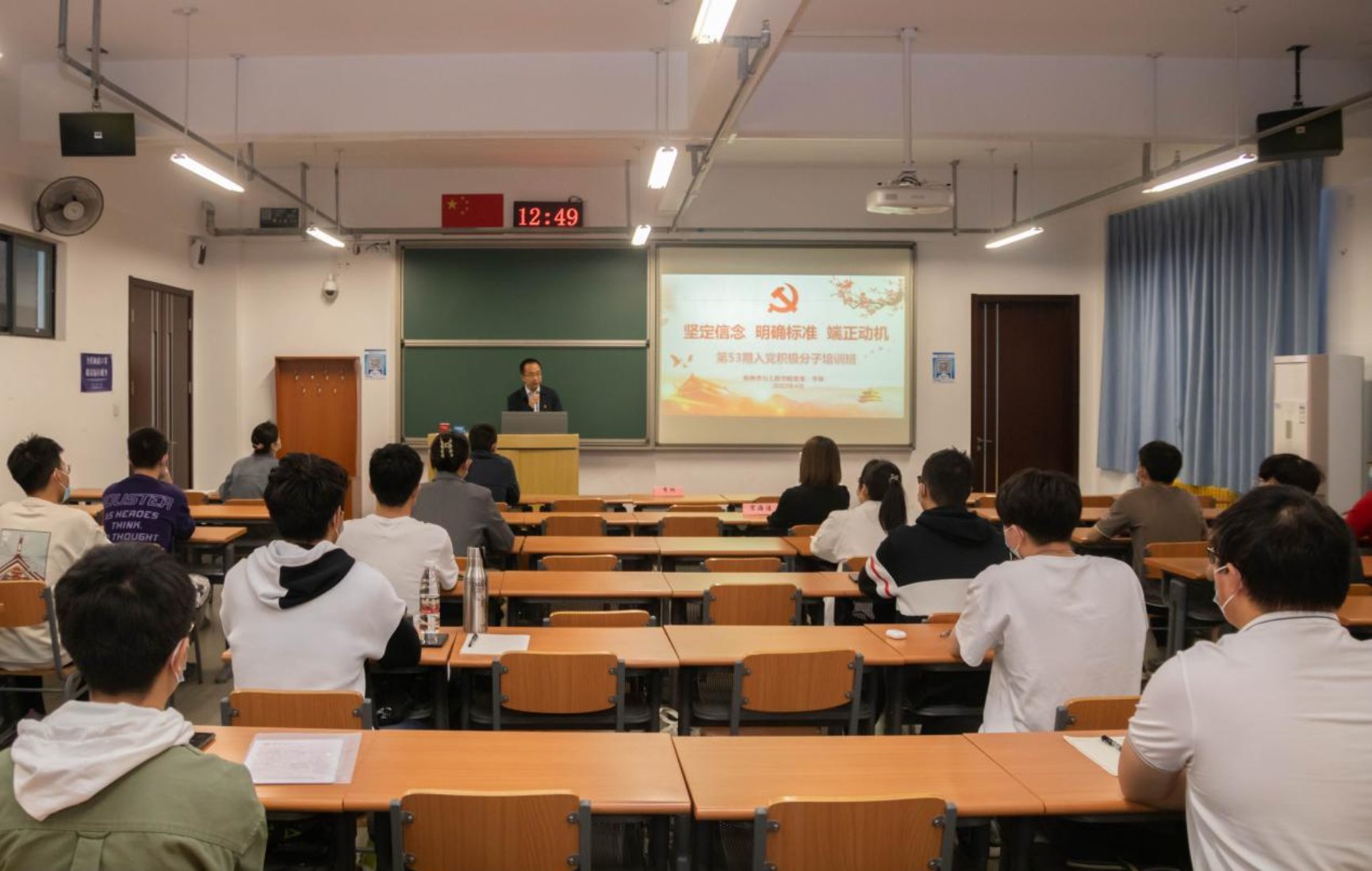 4月22日,吃瓜网 举办第53期入党积极分子培训班开班仪式。院党委书记李林出席并讲授党课,本科生党支部书记宫馨主持。